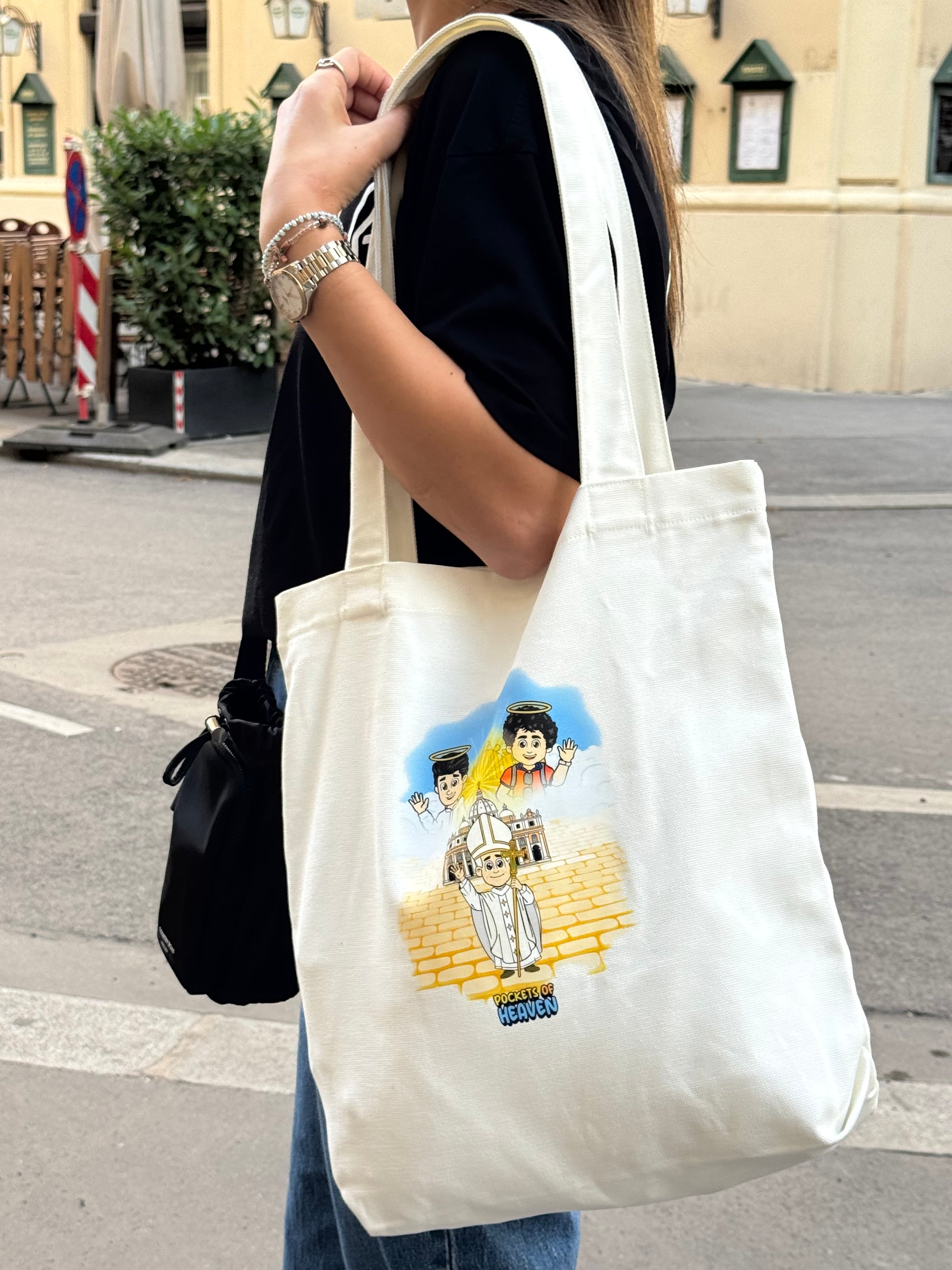 Limited Edition Canonization Tote Bag featuring St Carlo Acutis, St Pier Giorgio Frassati and Pope Leo XIV
