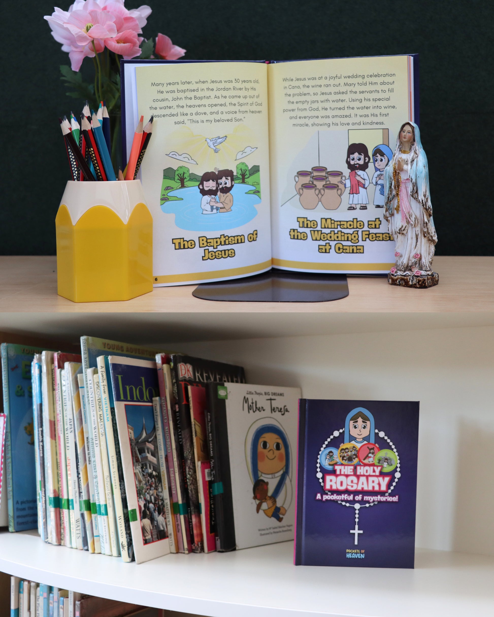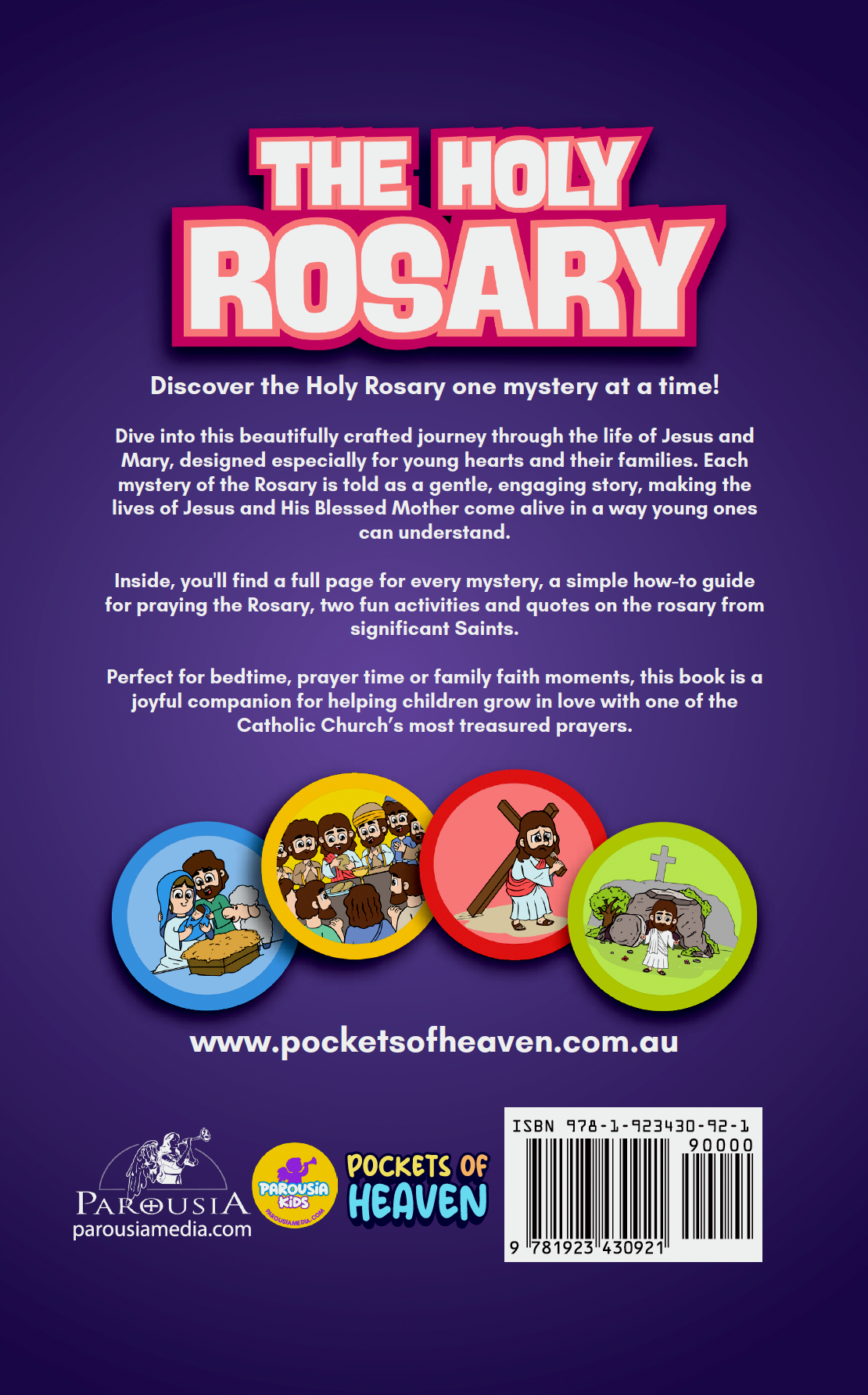 The Holy Rosary: A Pocketful of Mysteries is a beautifully crafted journey through the life of Jesus and Mary, designed especially for young hearts and their families. Each mystery of the Rosary is told as a gentle, engaging story, making the lives of Jesus and His Blessed Mother come alive in a way young ones can understand.